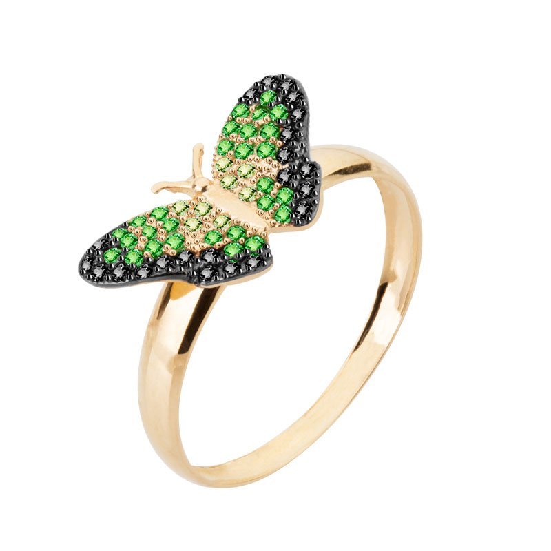 Anel borboleta G em ouro 18k com zircônias.