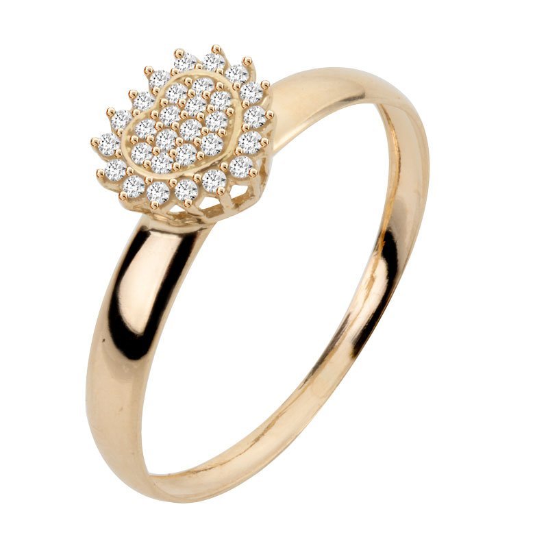Anel chuveiro coração em ouro 18k com zircônias.