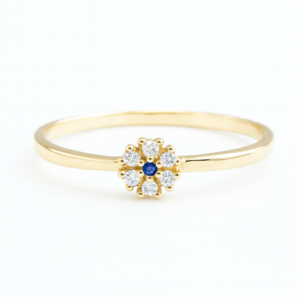 Anel chuveiro flor em ouro 18k com zircônias.