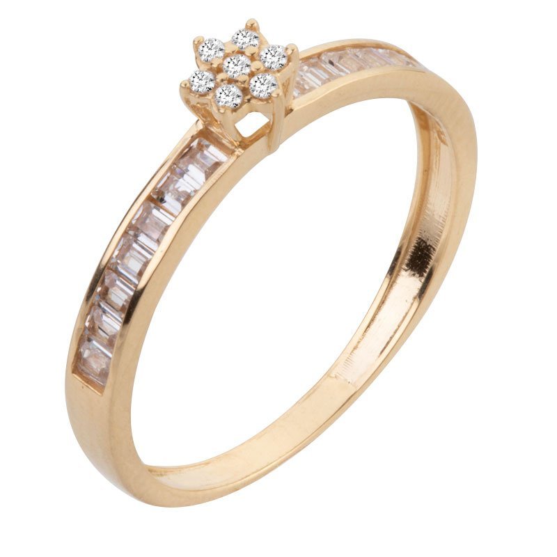 Anel chuveiro flor em ouro 18k com pedras laterais zircônias.