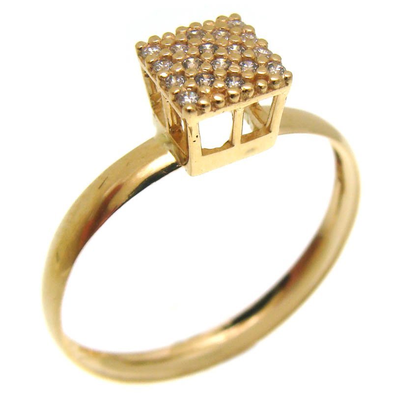 Anel chuveiro quadrado em ouro 18k com zircônias.