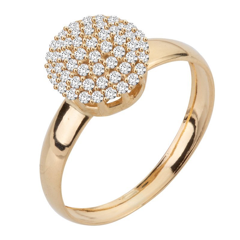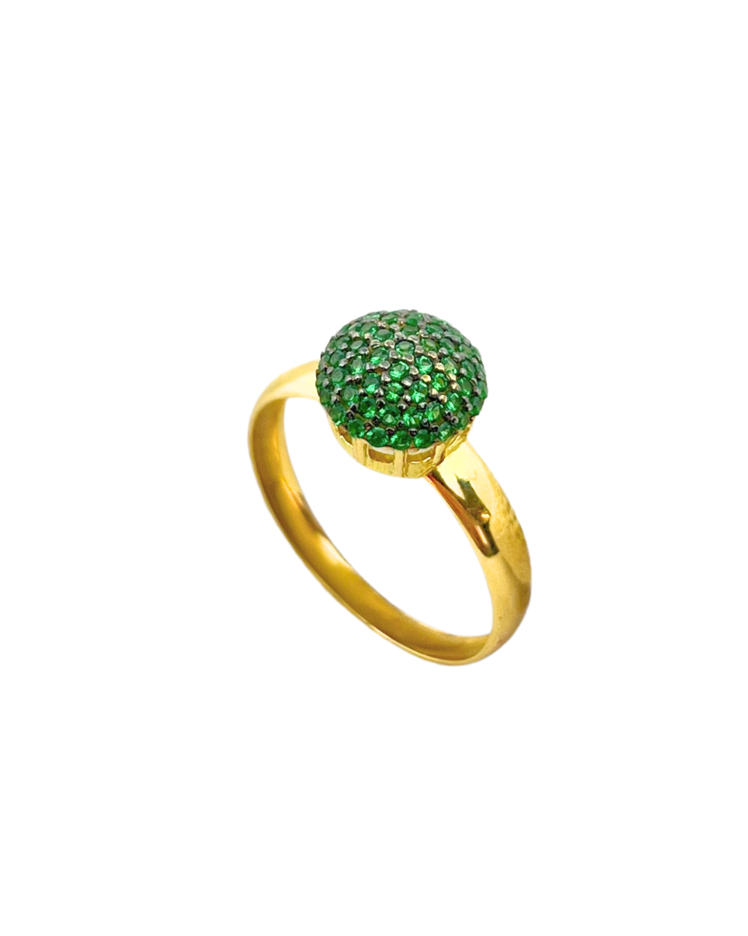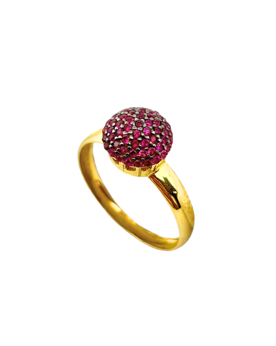 Anel chuveiro redondo médio abaulado em ouro 18k com zircônias.