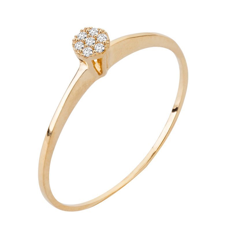 Anel chuveiro redondo P em ouro 18k com zircônias.