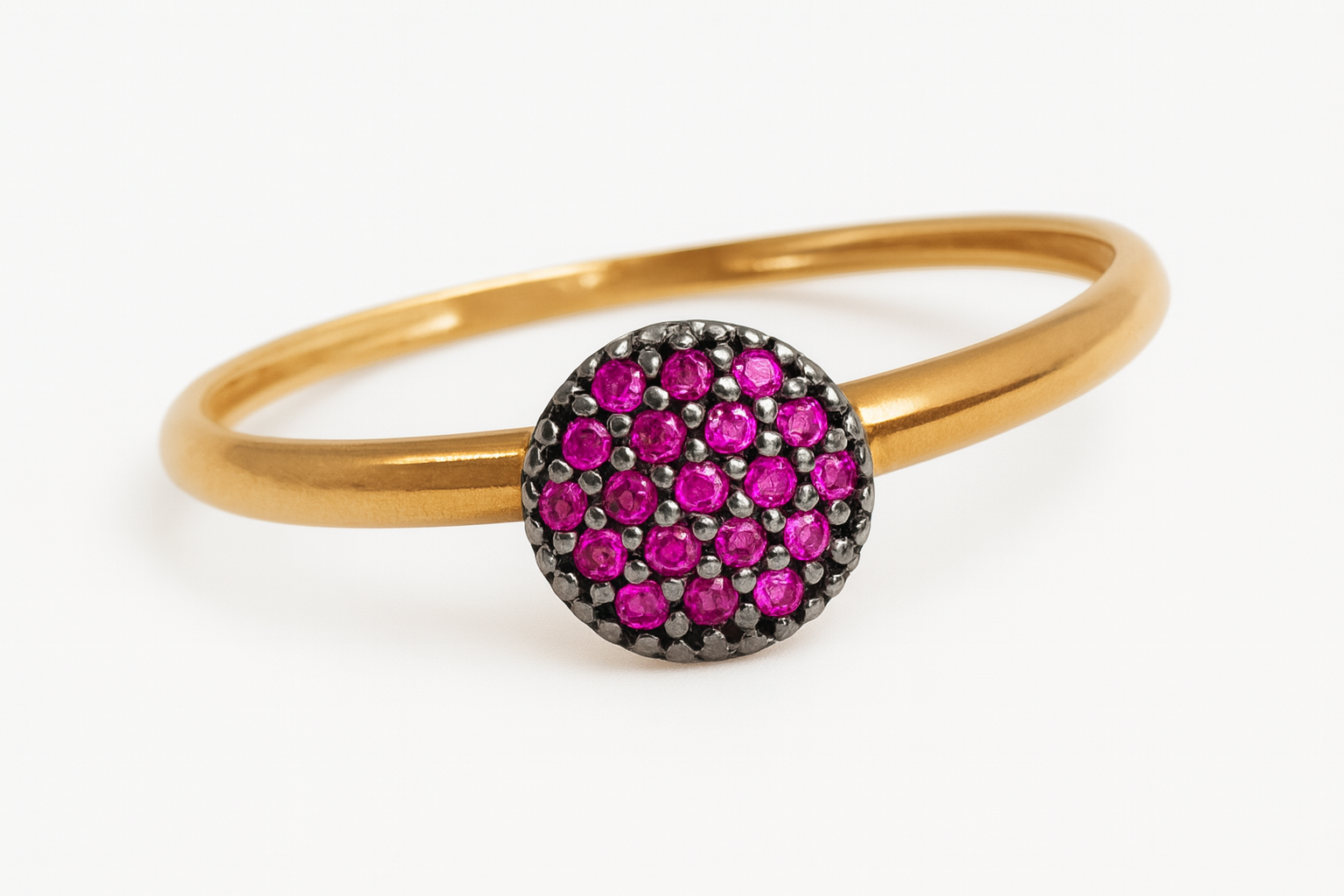 Anel chuveiro redondo em ouro 18k com zircônias.