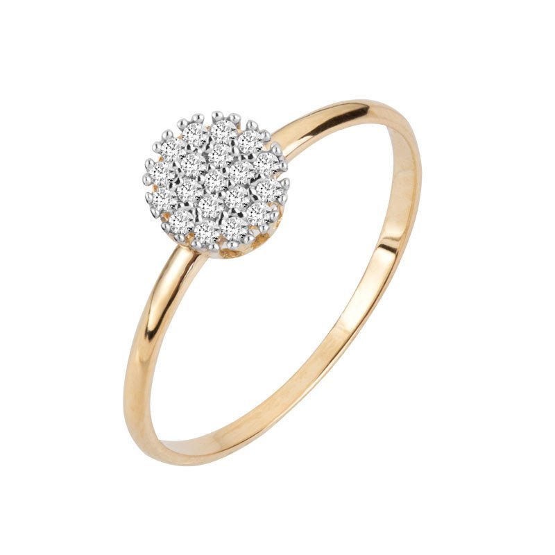 Anel chuveiro redondo em ouro 18k com 19 zircônias.
