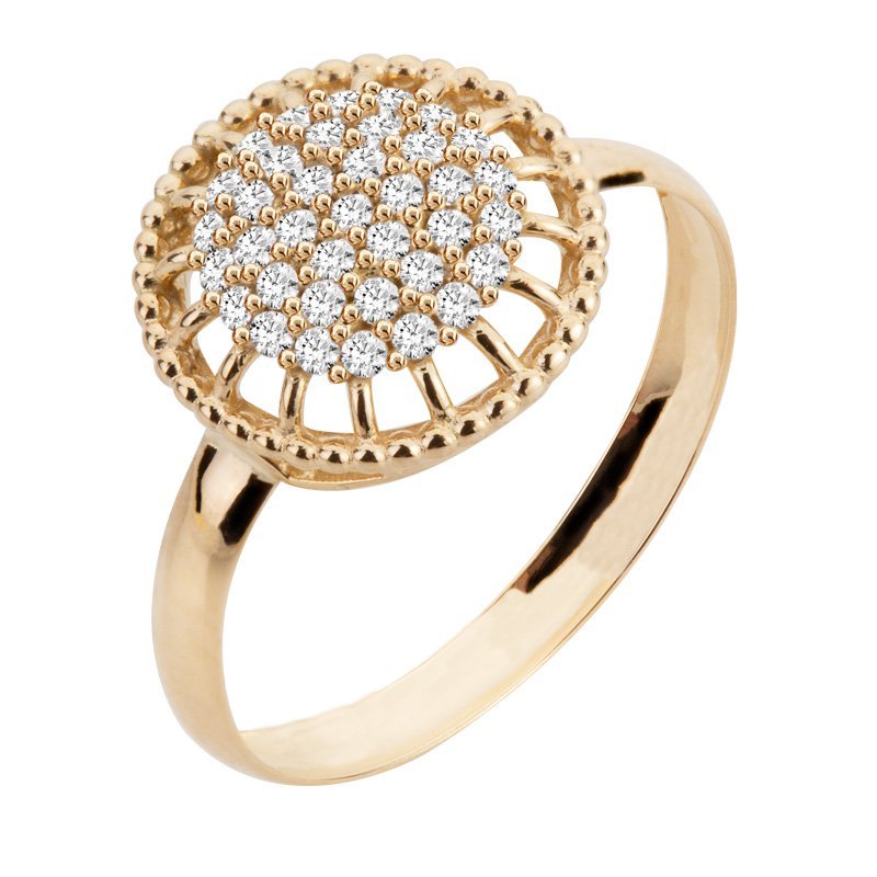 Anel chuveiro redondo fios em ouro 18k com zircônias.