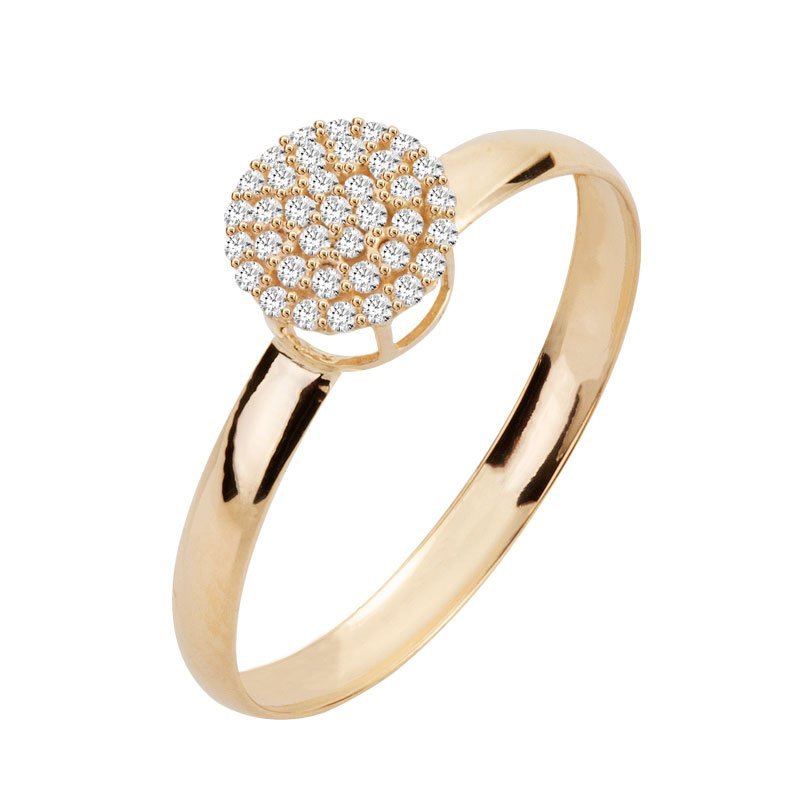 Anel chuveiro redondo em ouro 18k com zircônias.
