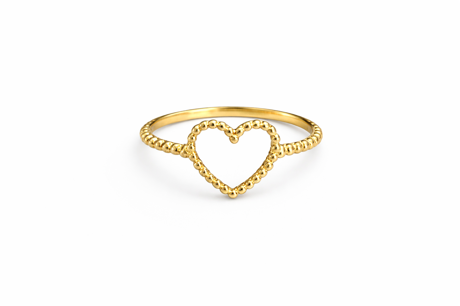 Anel coração vazado bolinhas em ouro 18k.