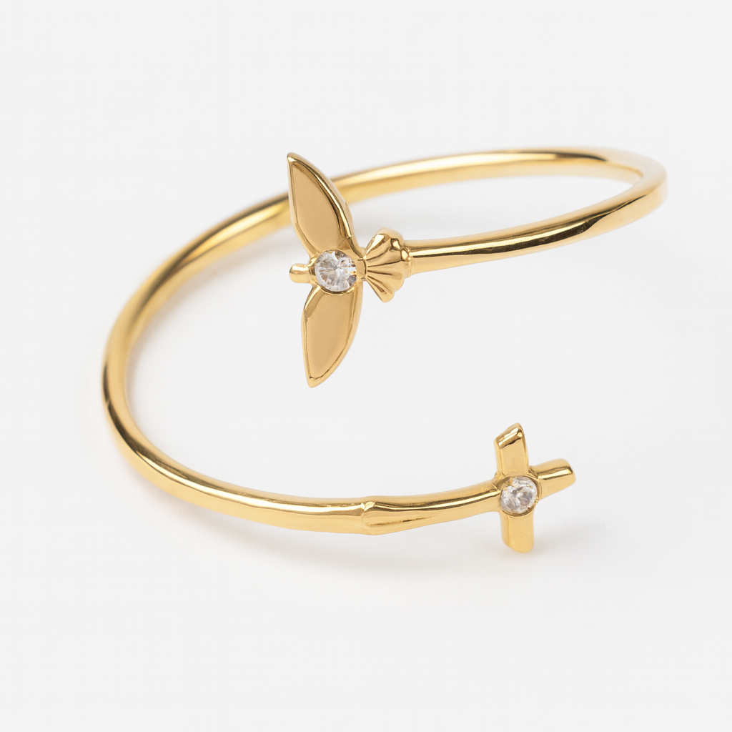 Anel cruz e Espírito Santo em ouro 18k com 2 brilhantes.