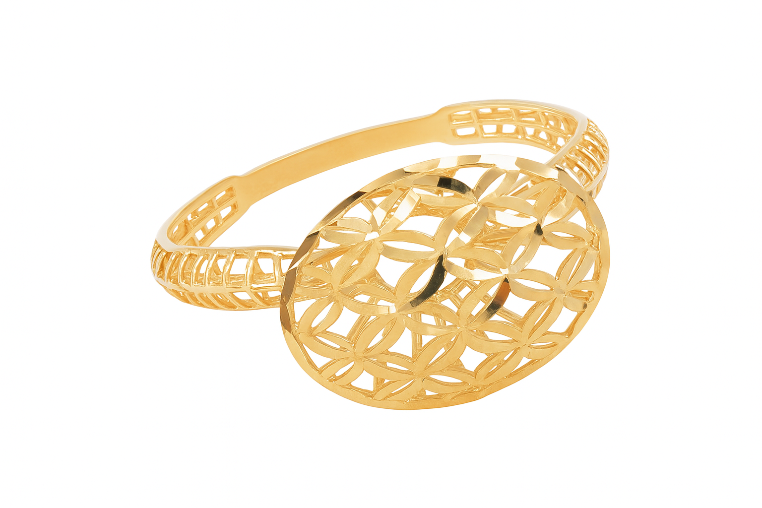 Anel diamantado oval vazado em ouro 18k.