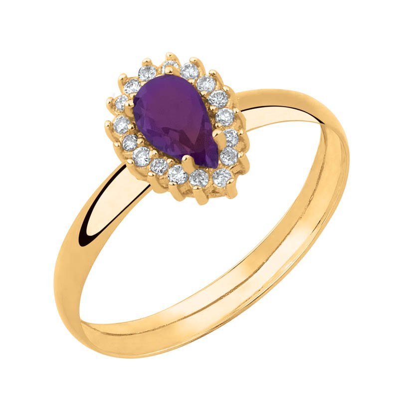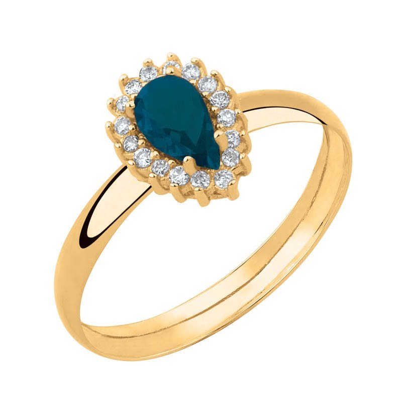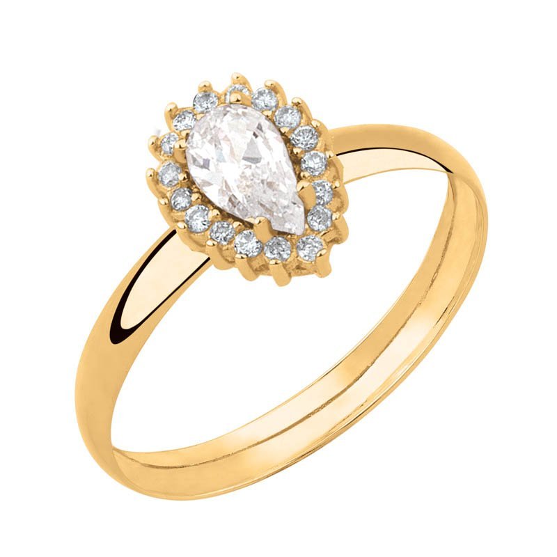 Anel formatura gota G em ouro 18k com zircônias.