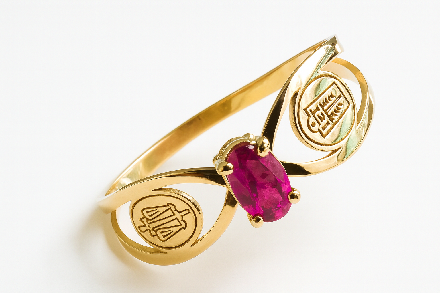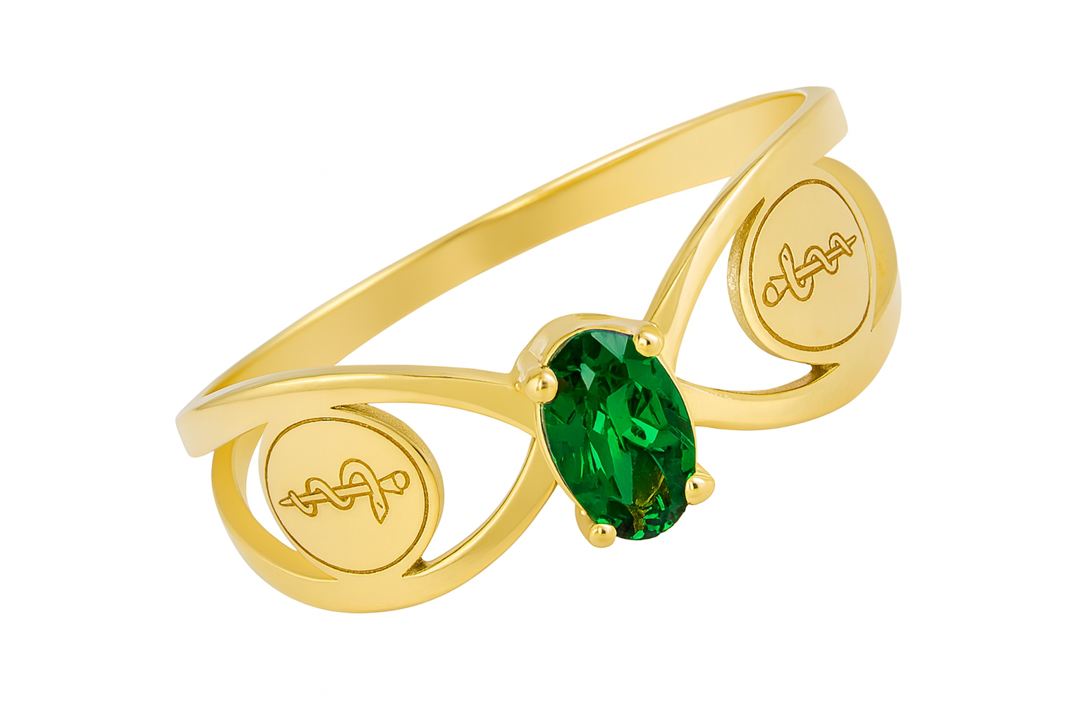 Anel formatura solitário com placa do curso em ouro 18k com zircônia oval.
