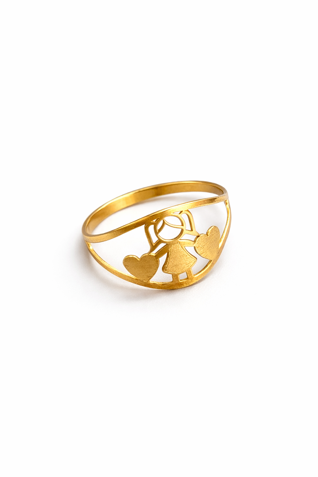 Anel menina corações em ouro 18k com zircônias.