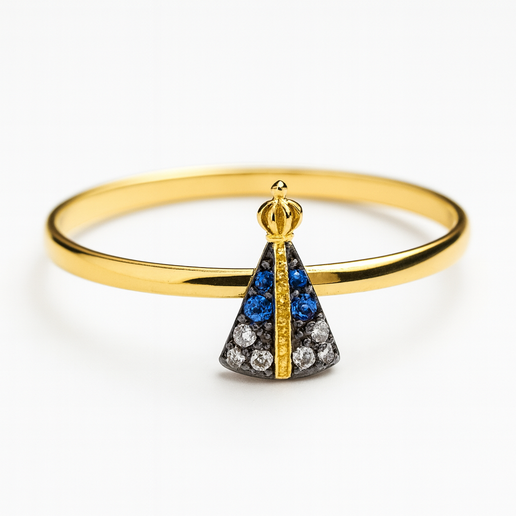 Anel Nossa Senhora Aparecida em ouro 18k com zircônias.
