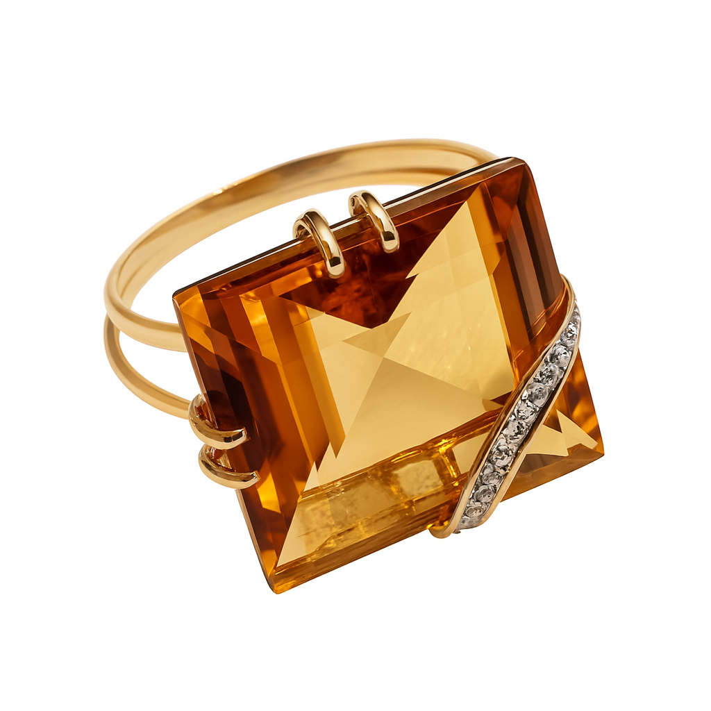 Anel em ouro 18k com pedra natural quadrada (Citrino).