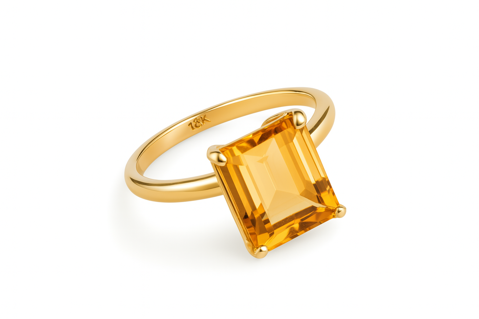 Anel em ouro 18k com pedra quadrada natural (citrino, ônix e cristal fumê).