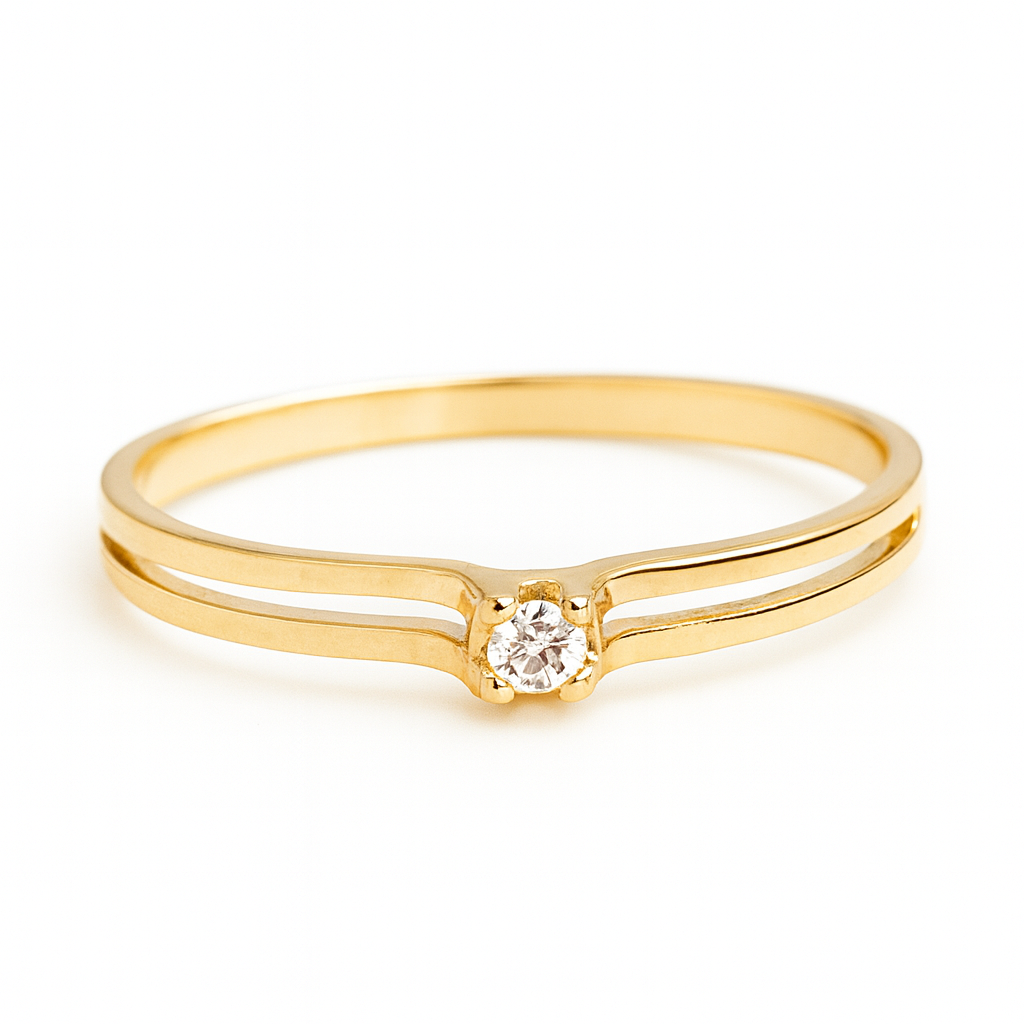 Anel solitário em ouro 18k com zircônia.
