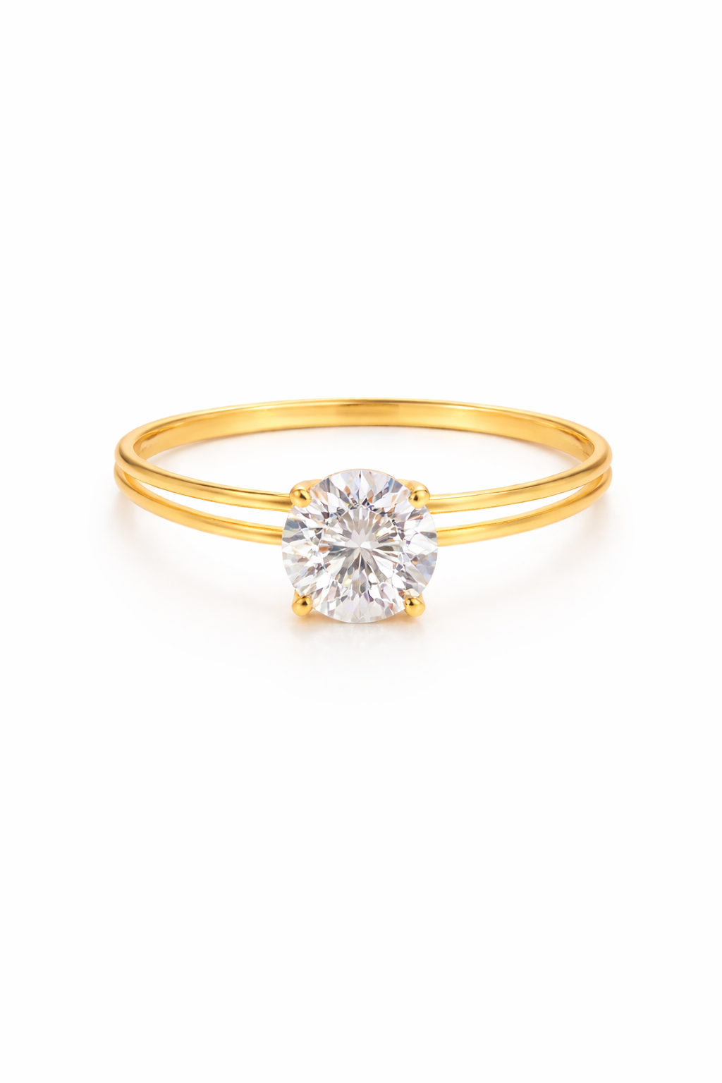 Anel solitário cálice com aro duplo em ouro 18k com zircônia de 6mm.
