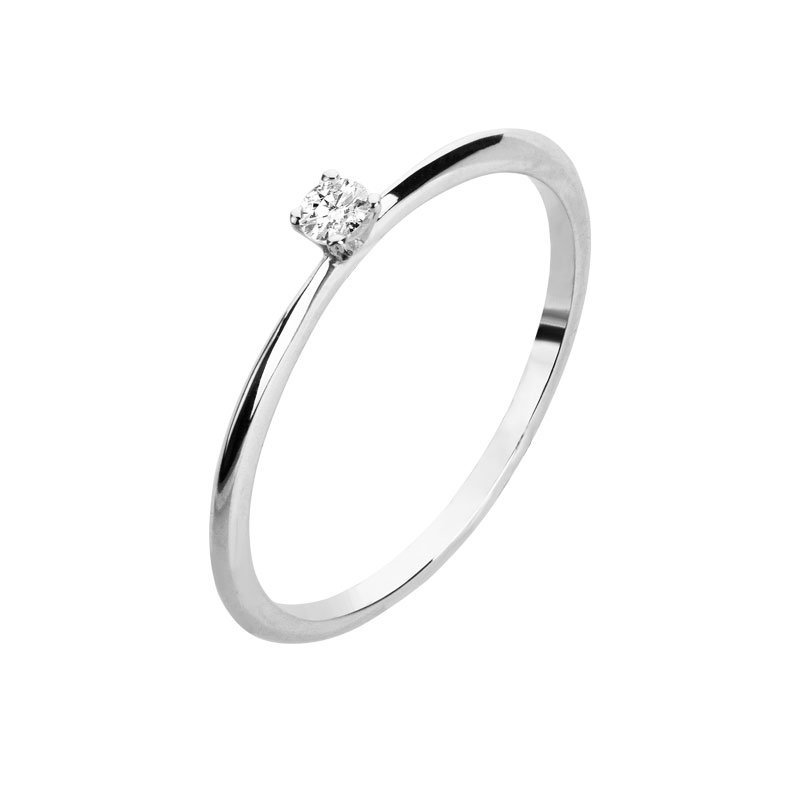 Anel solitário em ouro branco 18k com brilhante de 7pts.