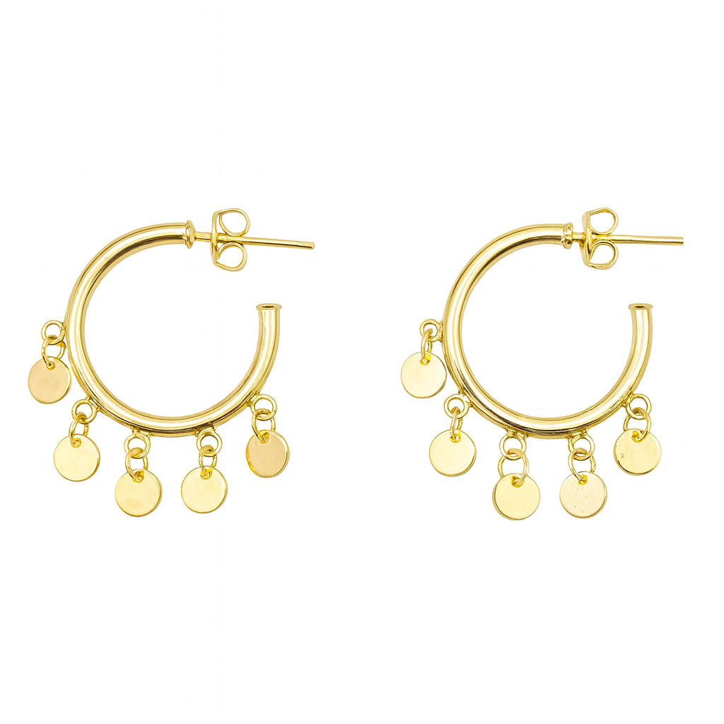 Argola redonda com círculos em ouro 18k.