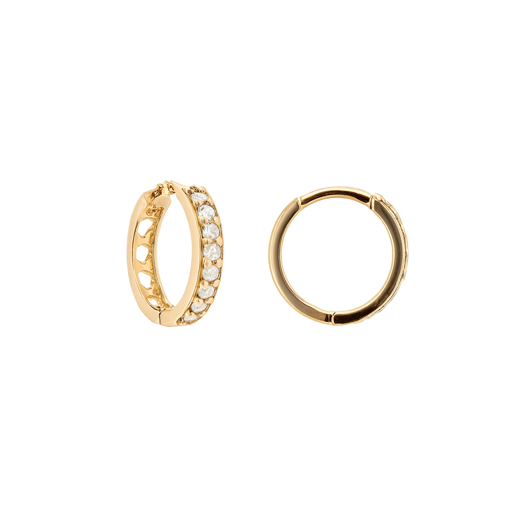 Argola redonda em ouro 18k com zircônias.