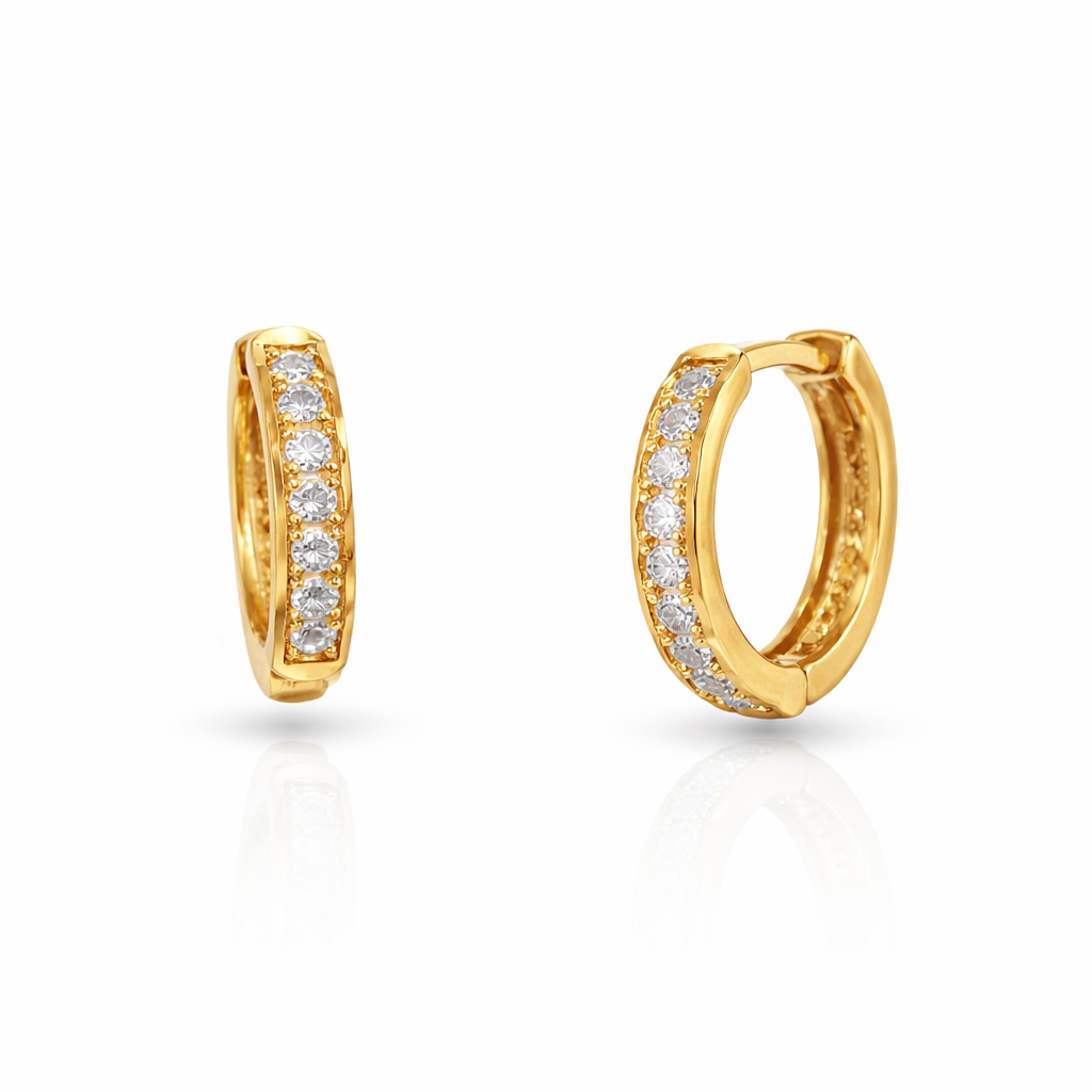 Argola redonda em ouro 18k com 1 fileira de zircônia.
