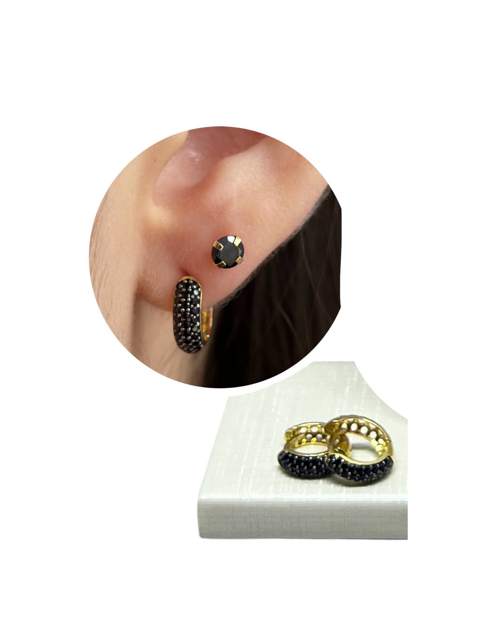 Argola em ouro 18k com 3 fileiras de zircônias.