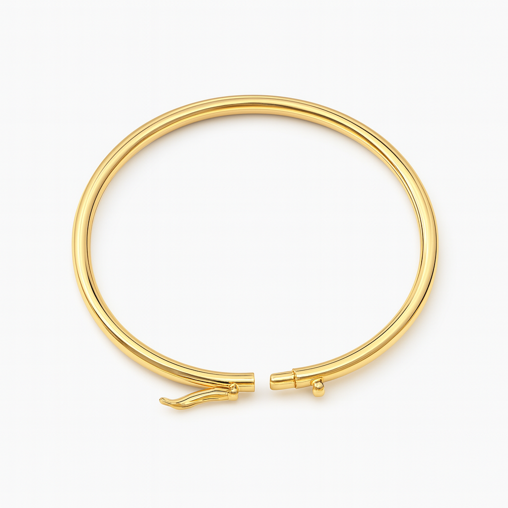 Bracelete fio redondo com 6,5cm de diâmetro em ouro 18k.