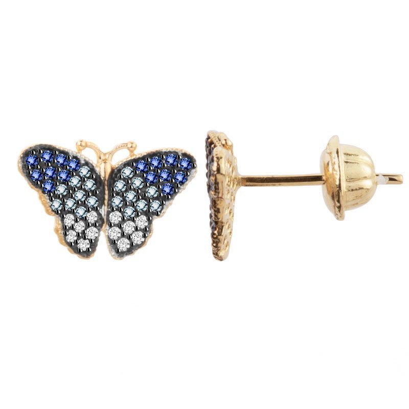 Brinco borboleta azul em ouro 18k com zircônias.