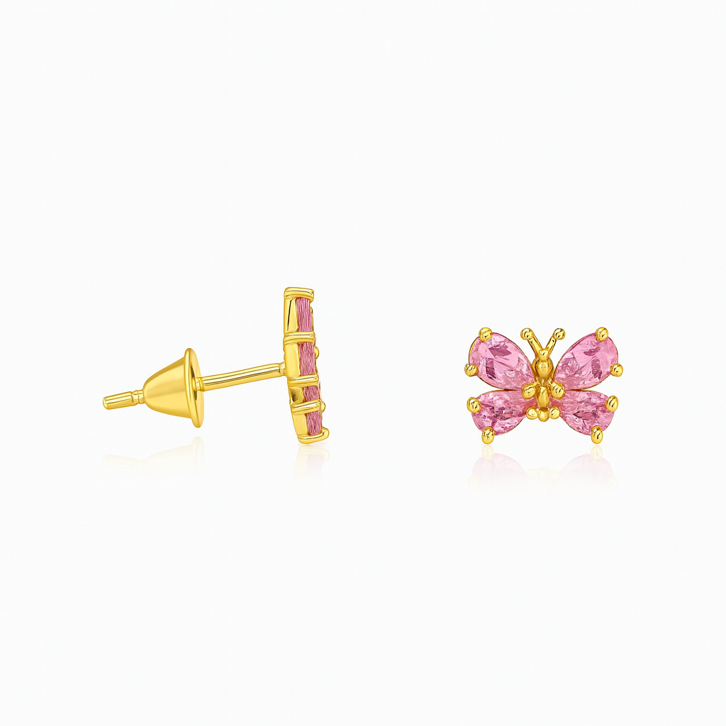 Brinco Borboleta em ouro 18k com zircônias.