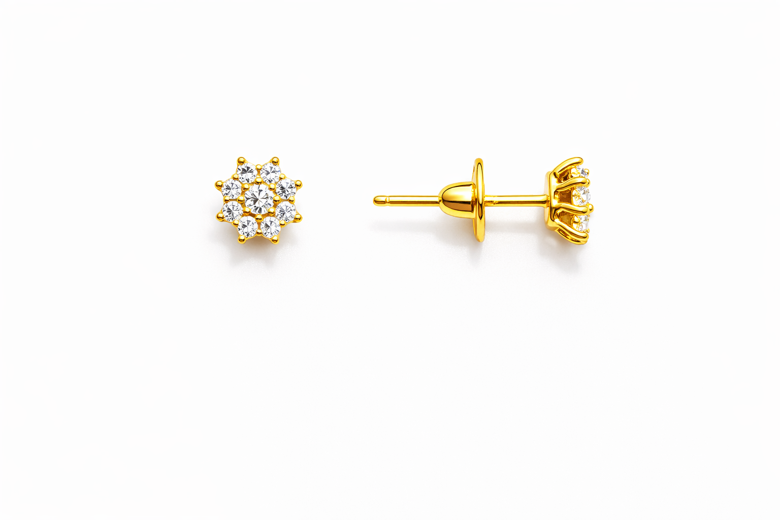 Brinco chuveiro flor em ouro 18k com zircônias.