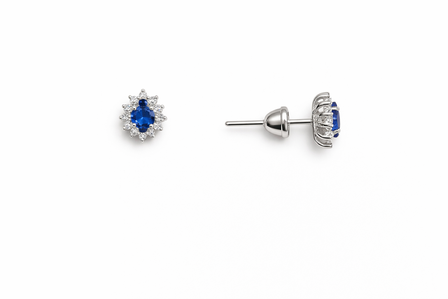 Brinco chuveiro gota medindo 4x3mm em ouro branco 18k com zircônias.