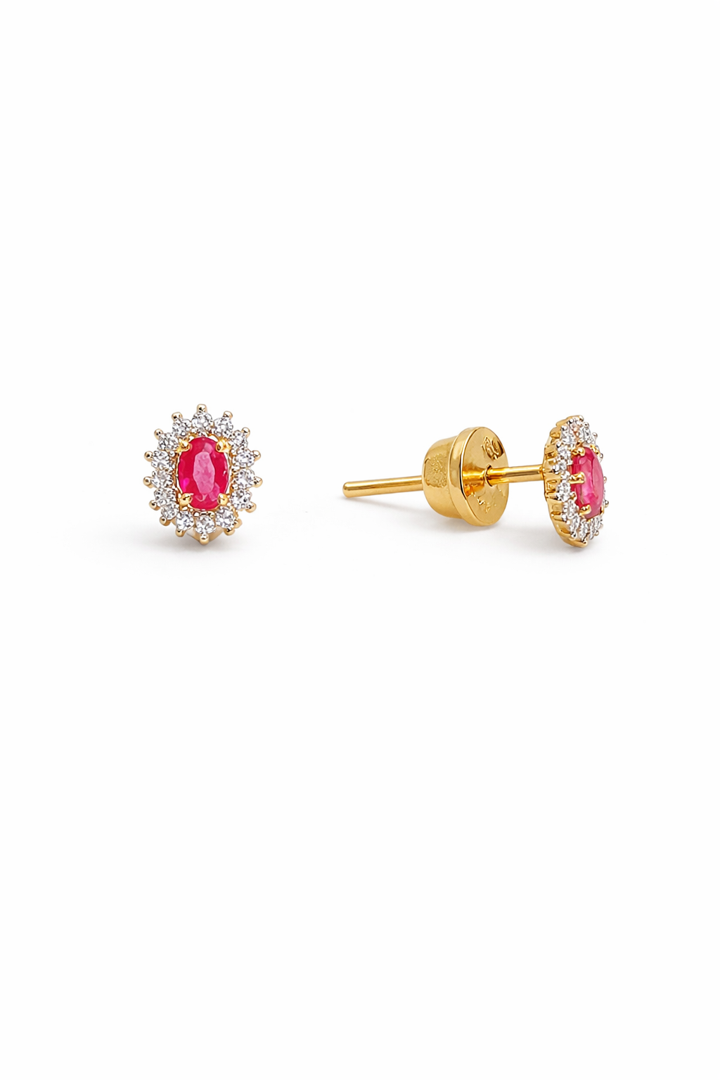 Brinco chuveiro oval medindo 3x2mm em ouro 18k com zircônias.
