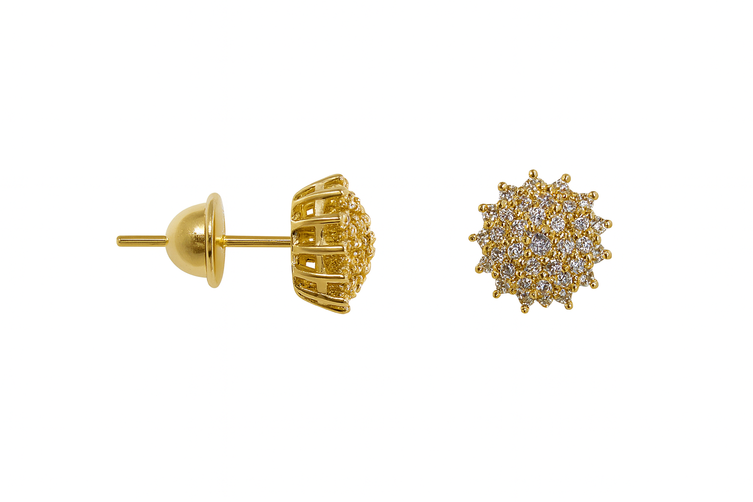 Brinco chuveiro redondo em ouro 18k com zircônias.