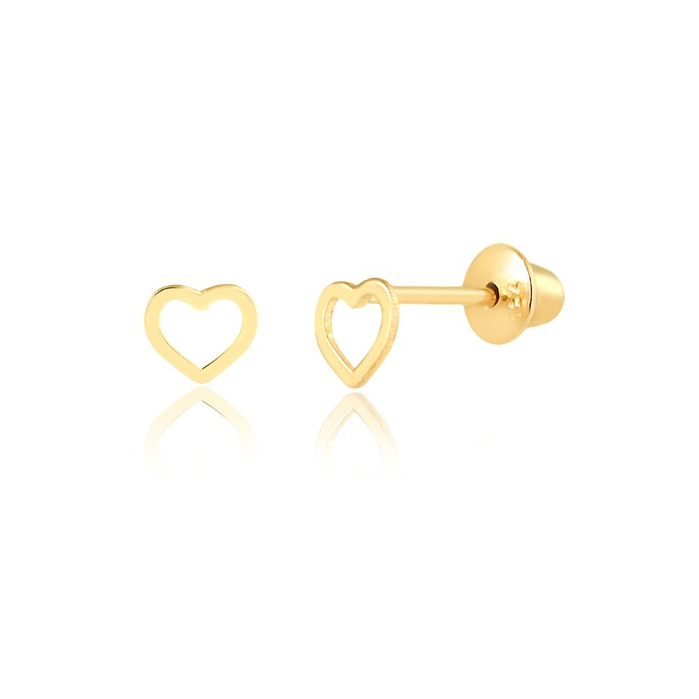 Brinco coração PP vazado em ouro 18k.