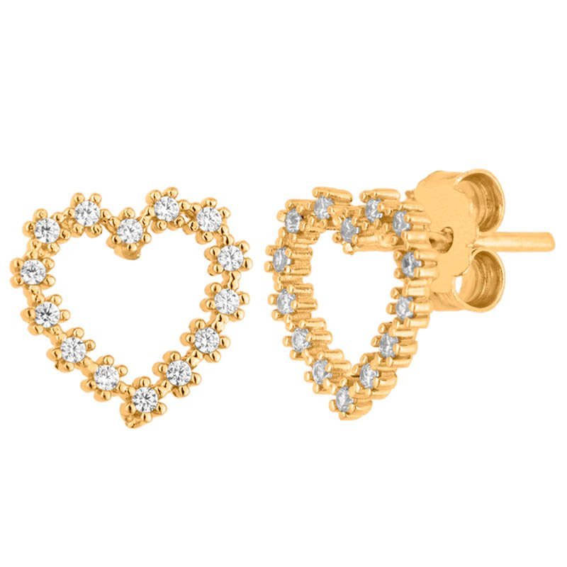 Brinco coração vazado em ouro 18k com zircônias.
