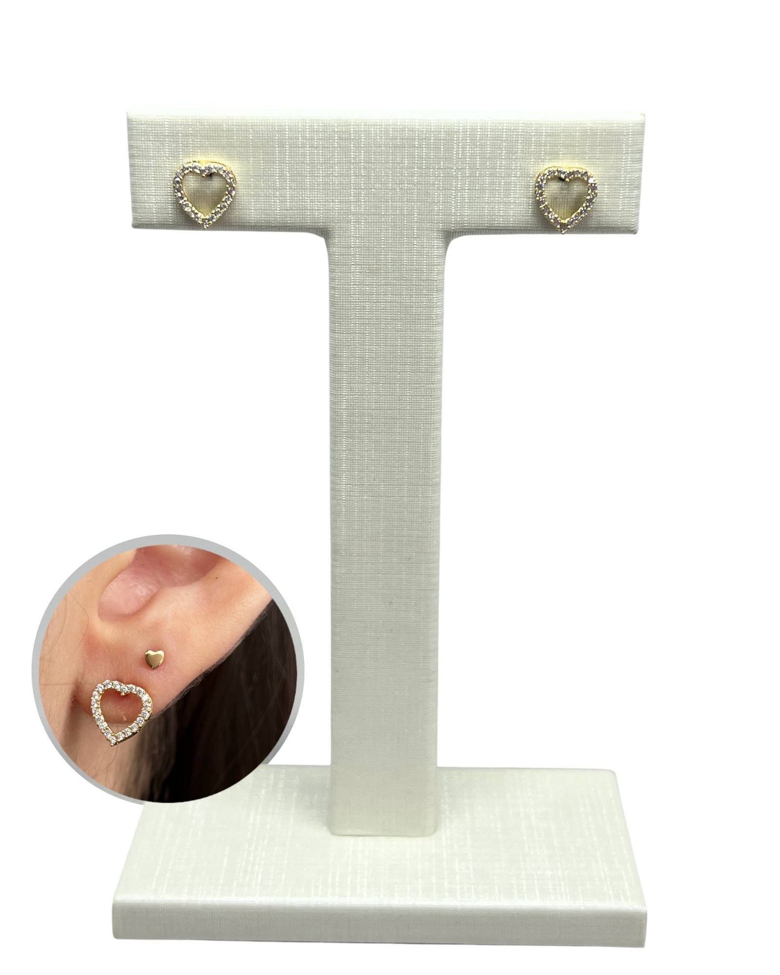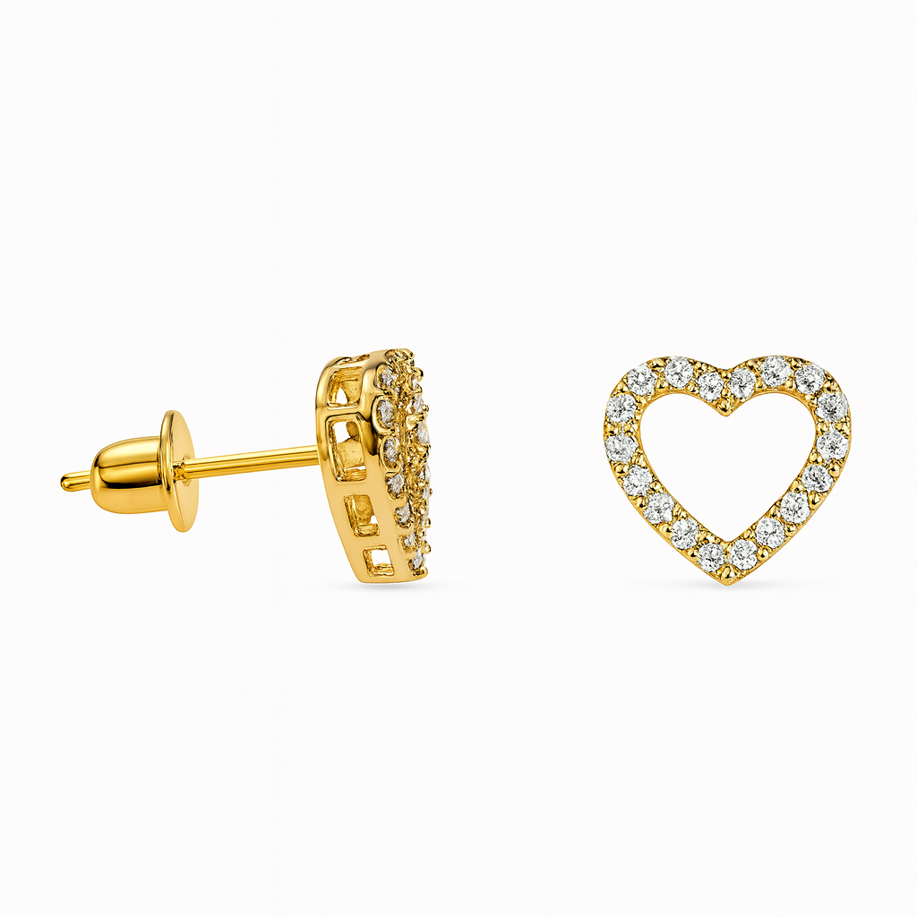 Brinco coração M galeria em ouro 18k com zircônias.