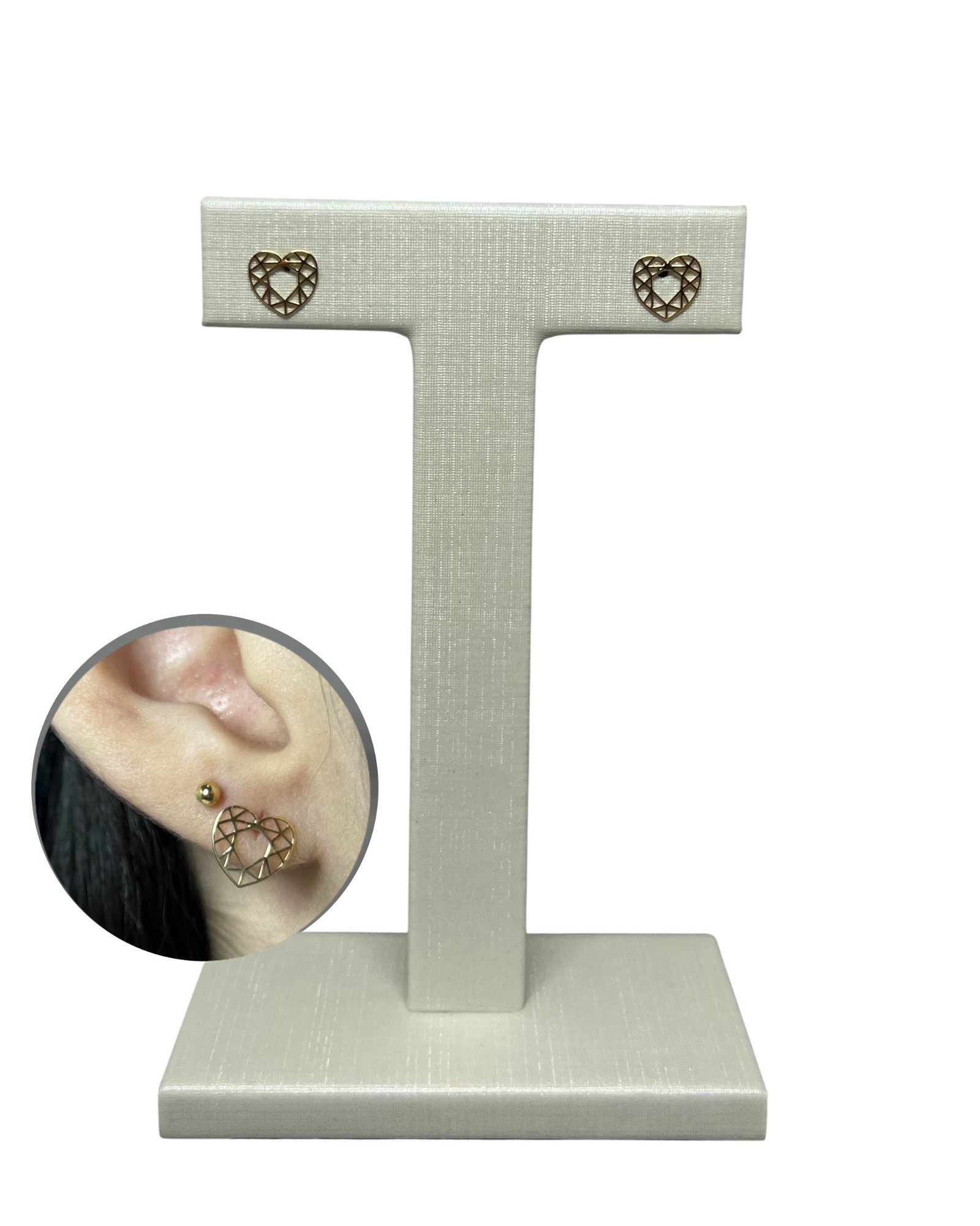 Brinco coração geométrico em ouro 18k.