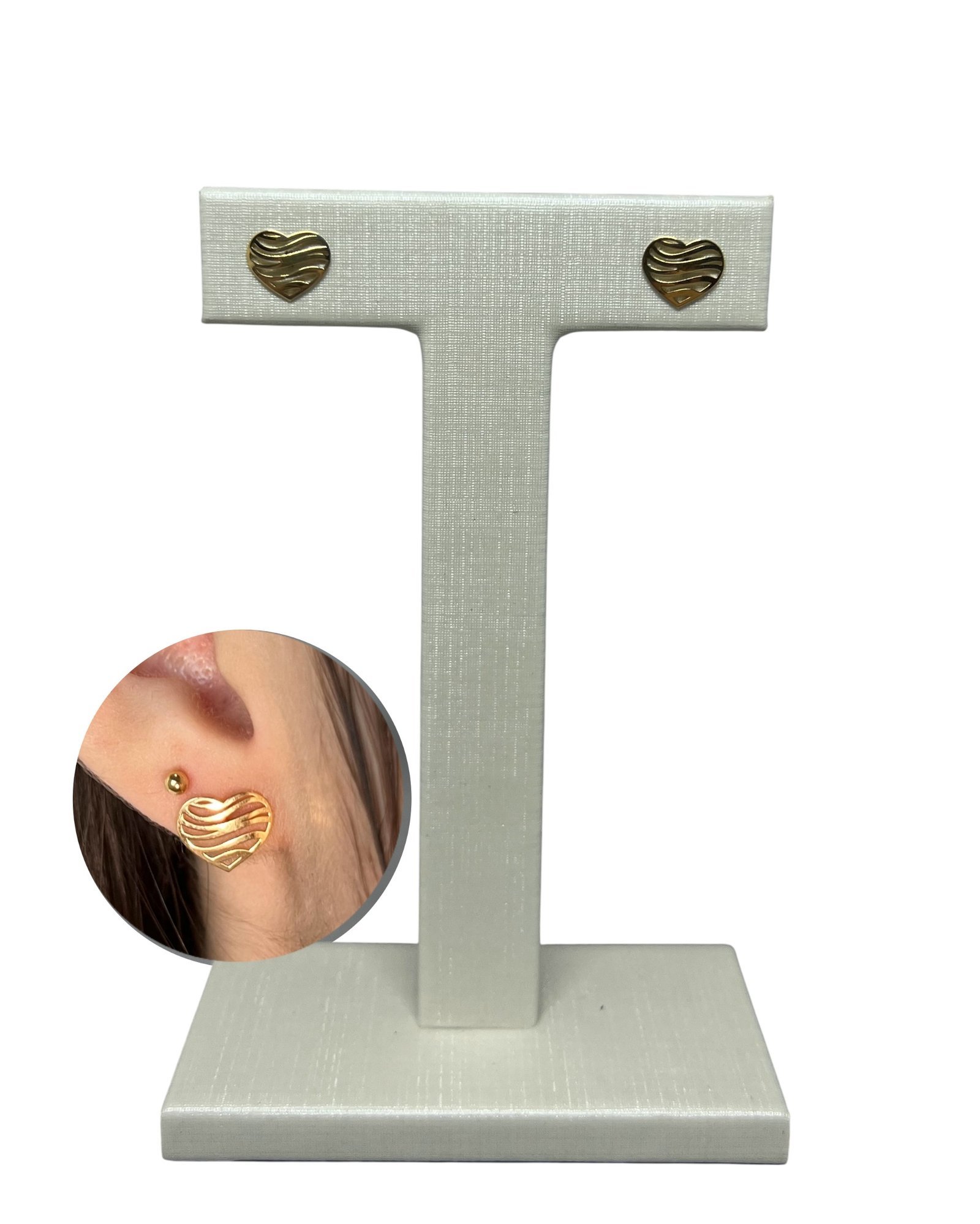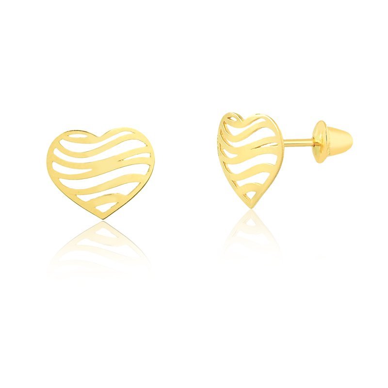 Brinco coração ondas em ouro 18k.