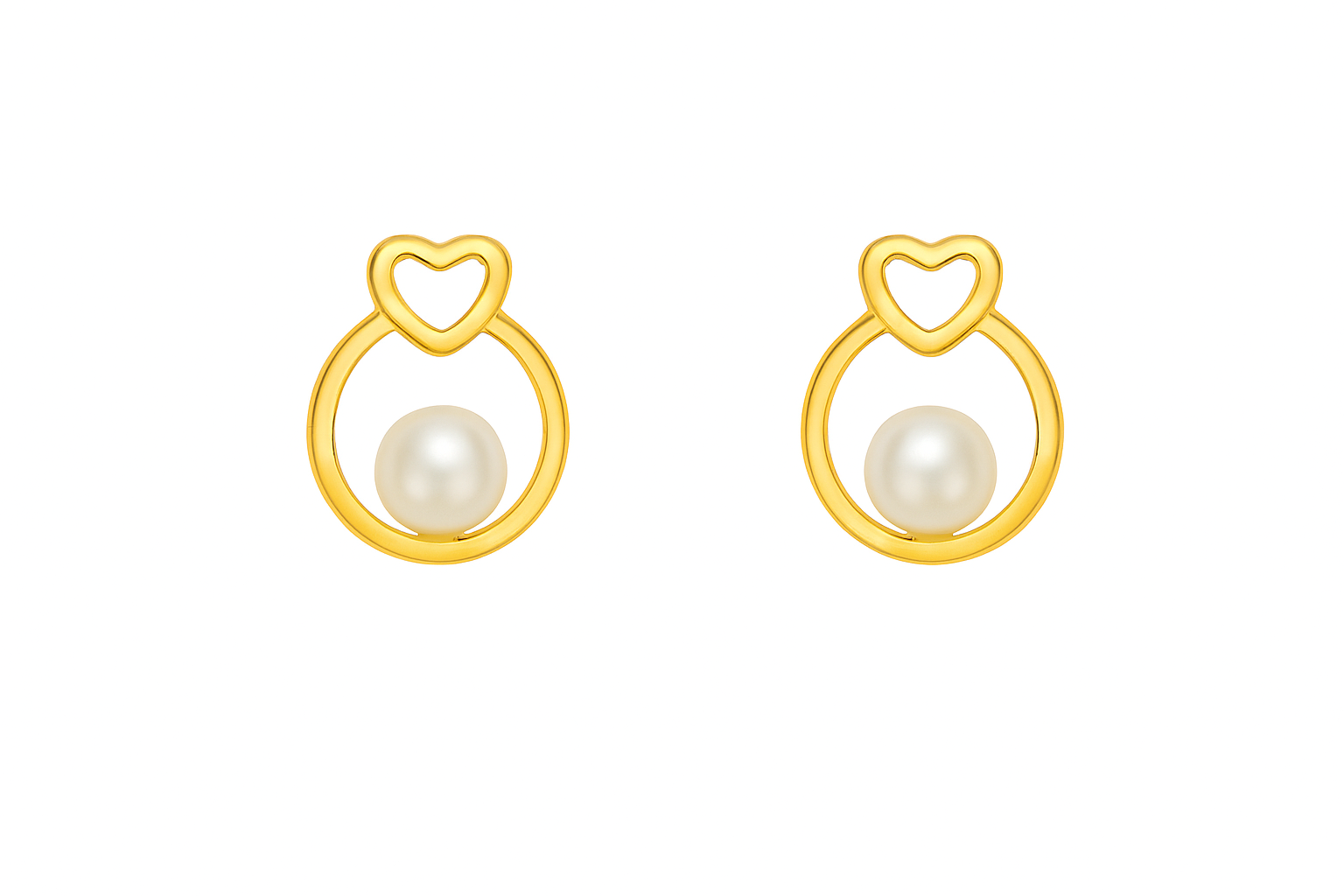 Brinco Coração em ouro 18k com Pérola.