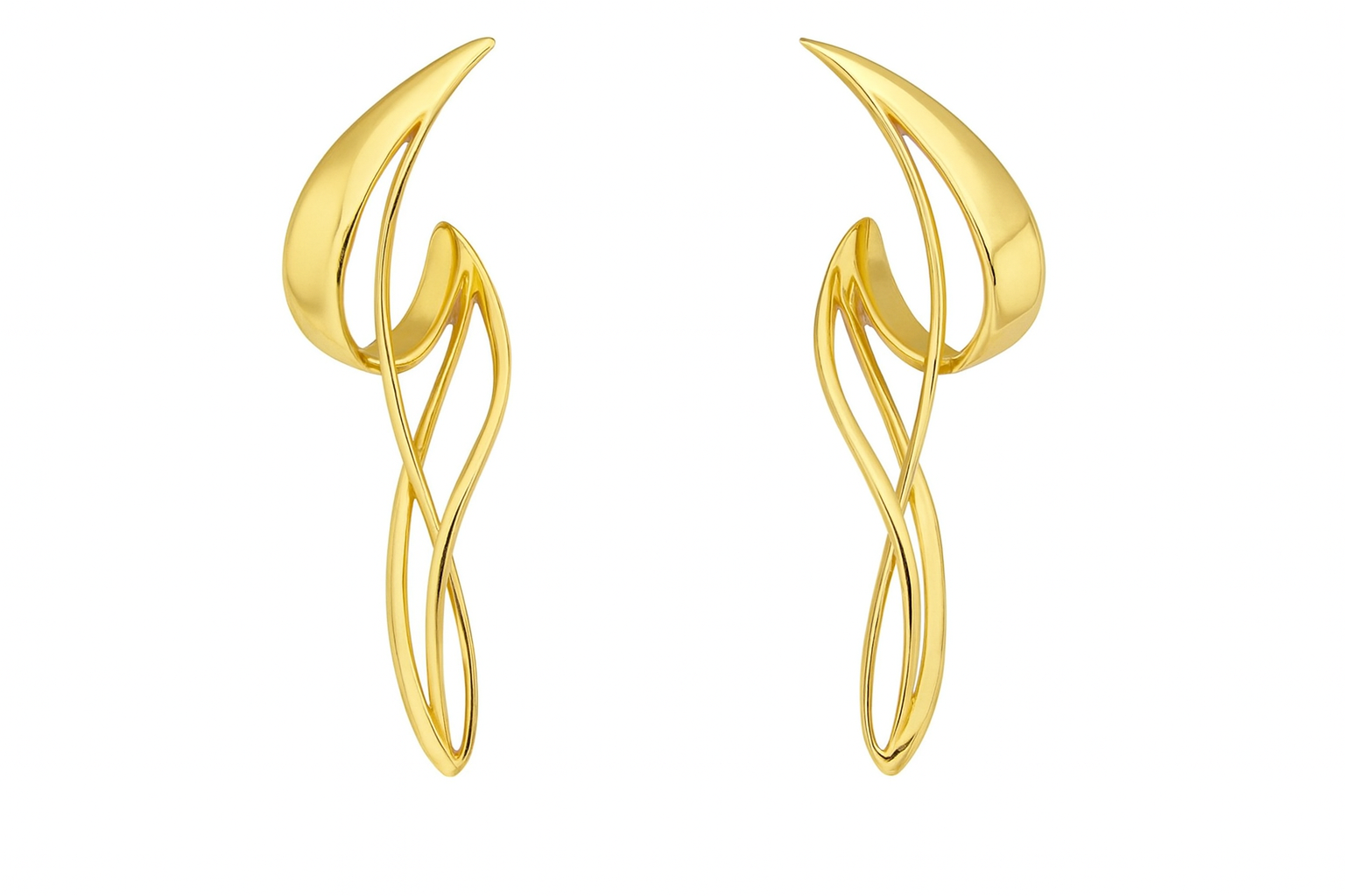 Brinco curvas amarelo em ouro 18k.