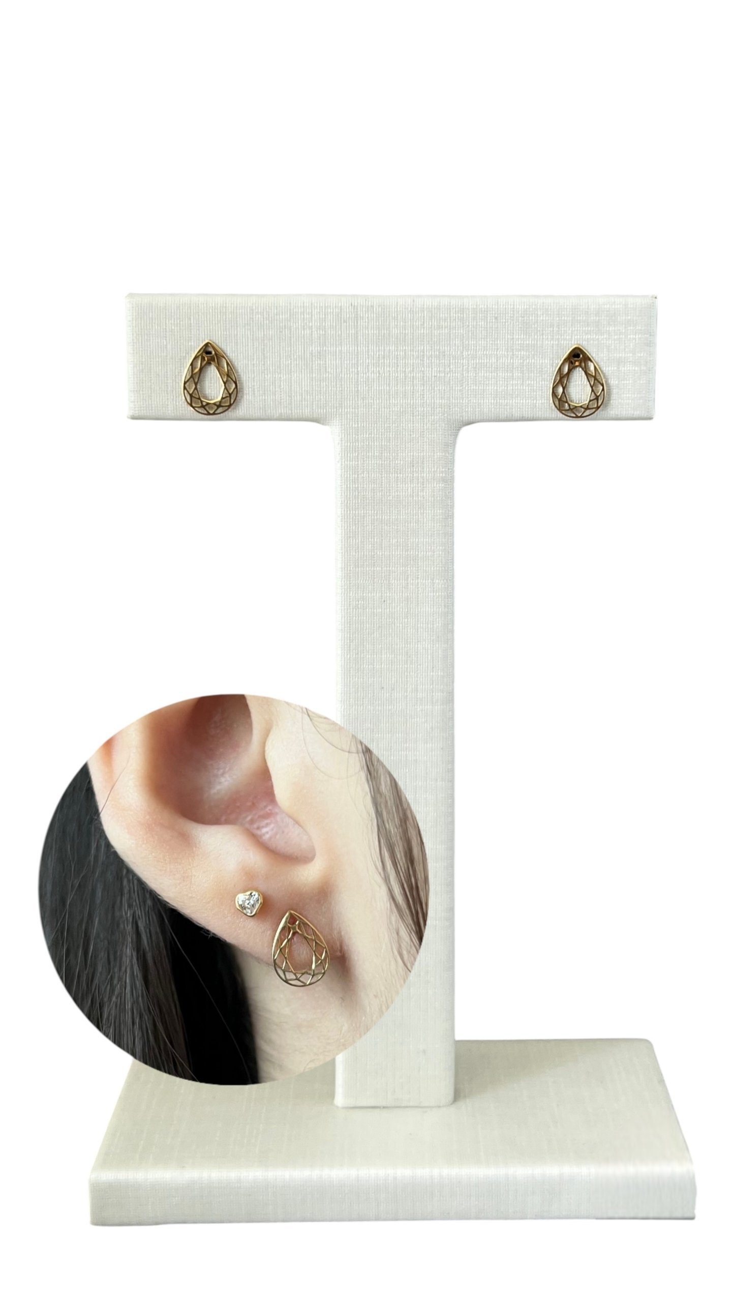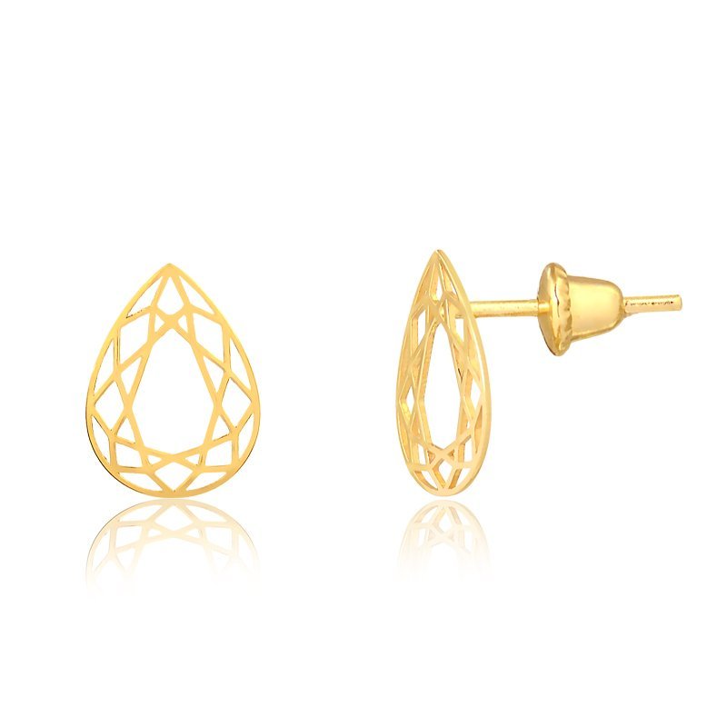 Brinco gota fios vazado em ouro 18k.