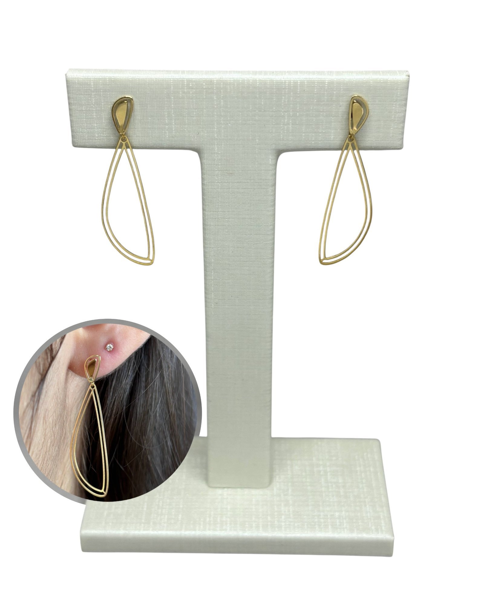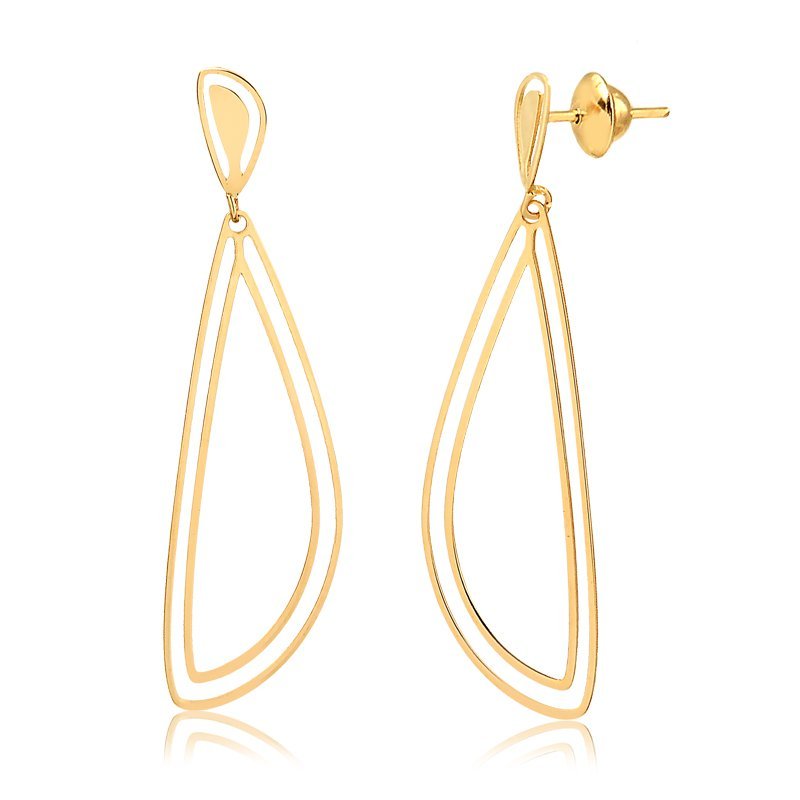 Brinco gota pendurada vazada em ouro 18k.