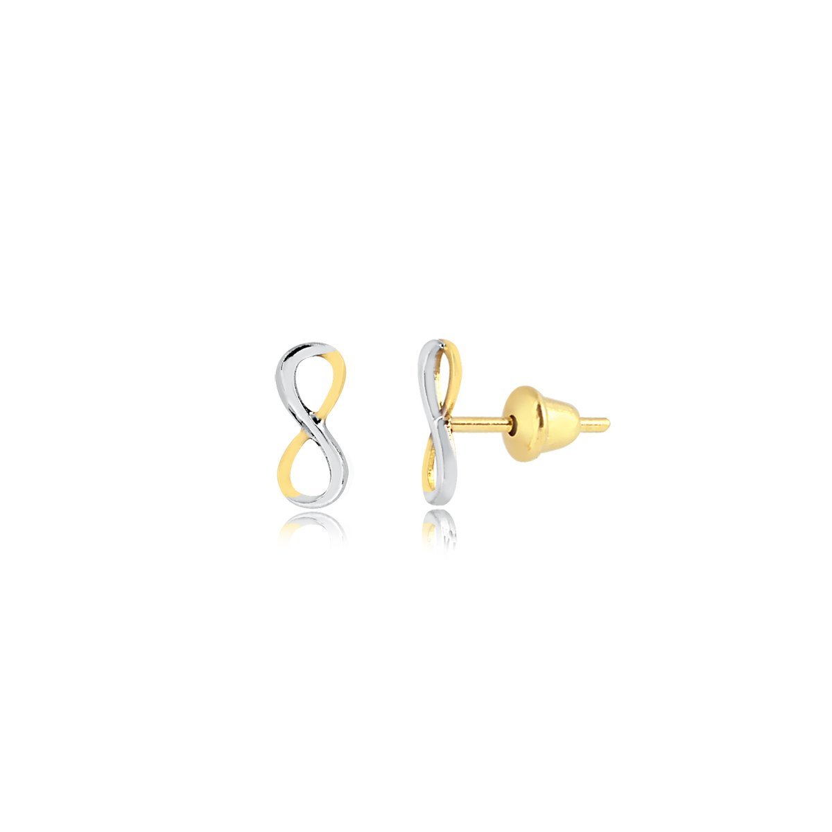 Brinco infinito vazado em ouro amarelo 18k e ouro branco.
