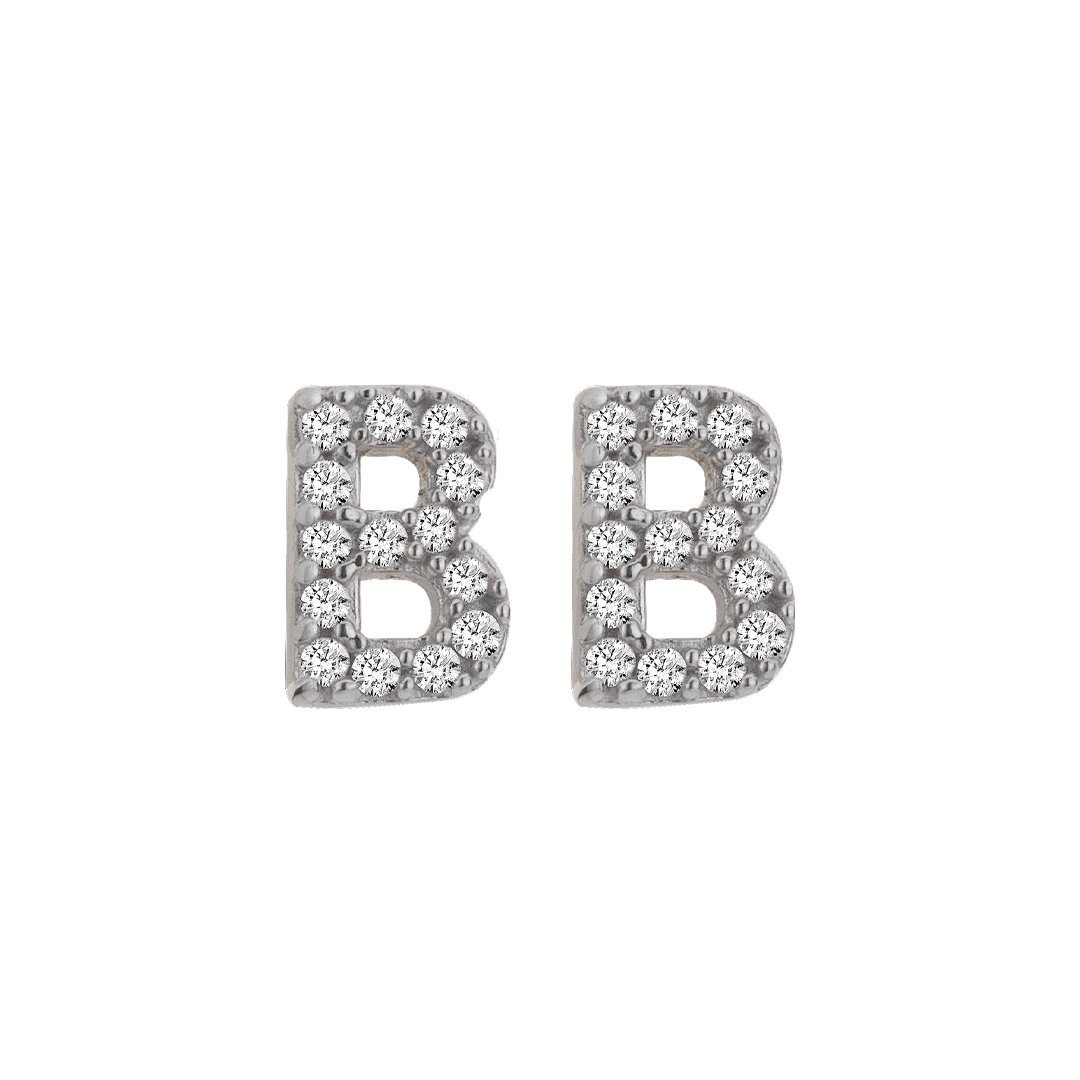 Brinco letra B em ouro 18k com zircônias.