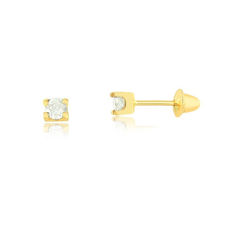 Brinco em ouro 18k com pedra redonda cartier de zircônia de 2.6mm.