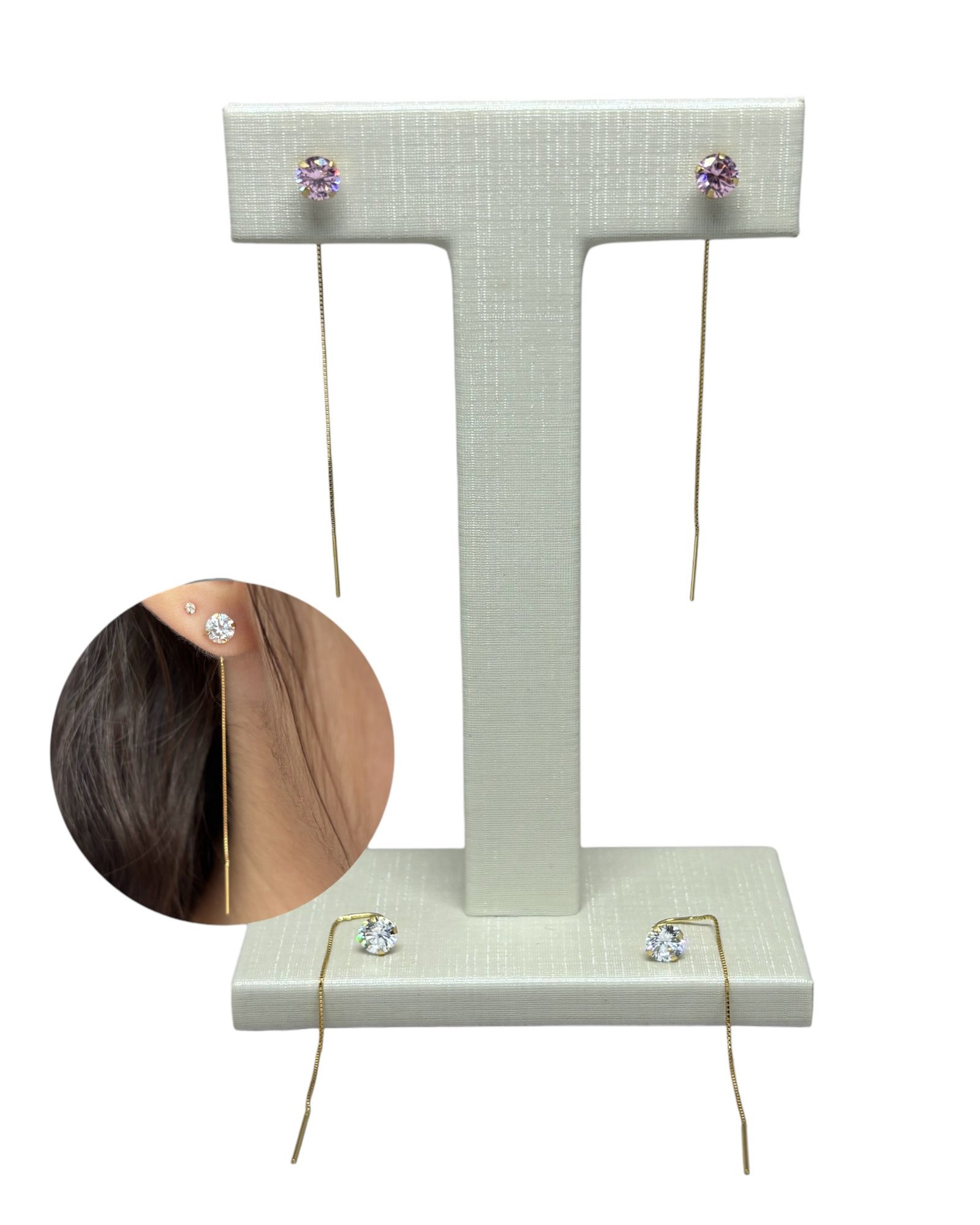 Brinco veneziana em ouro 18k com pedra redonda.