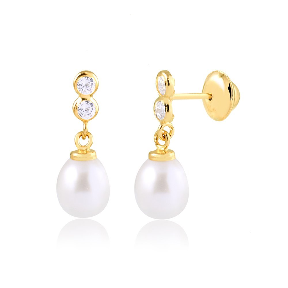 Brinco em ouro 18k com zircônias e pérolas.