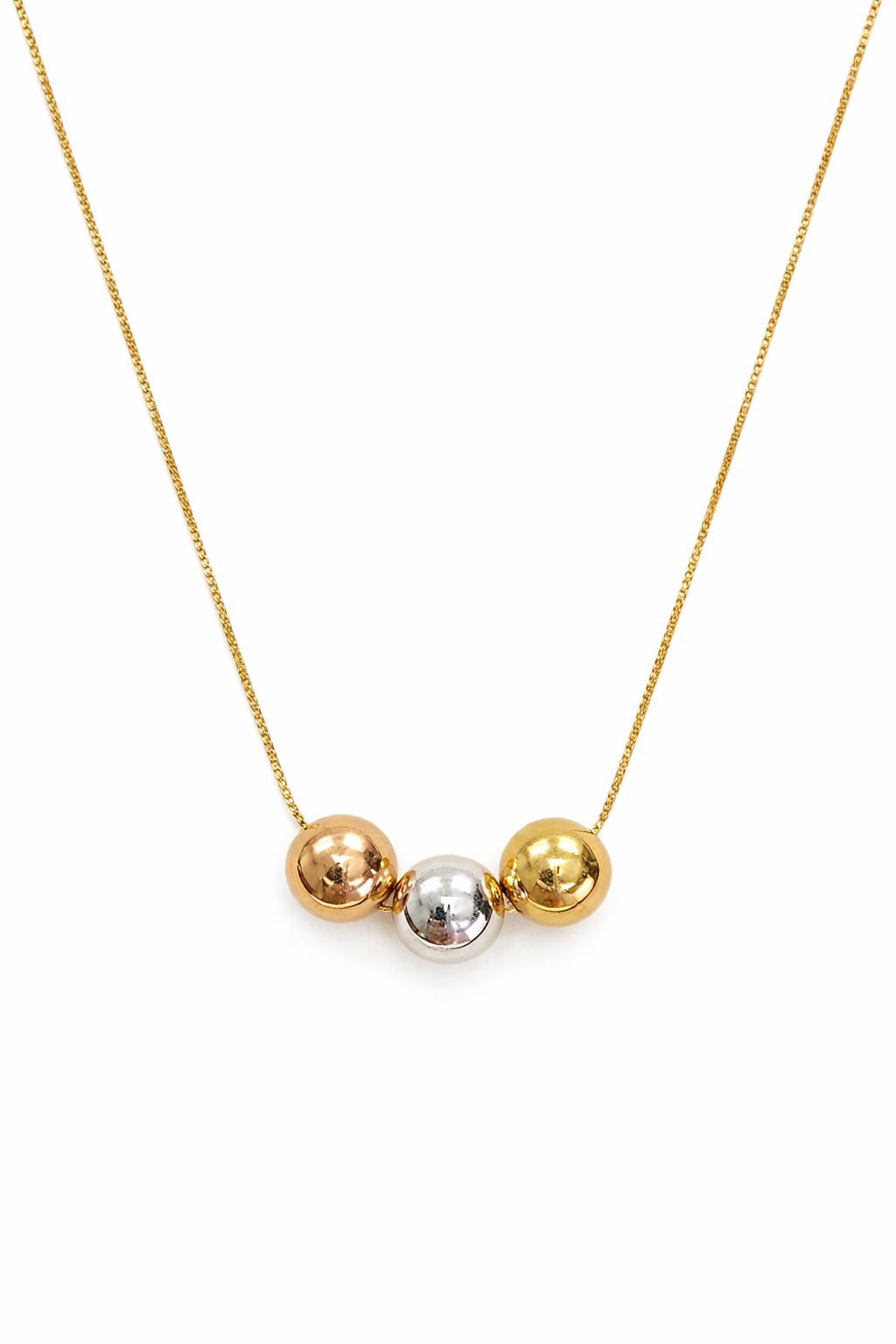 Gargantilha veneziana de 40/45cm em ouro 18k com trio de bolas tricolor.
