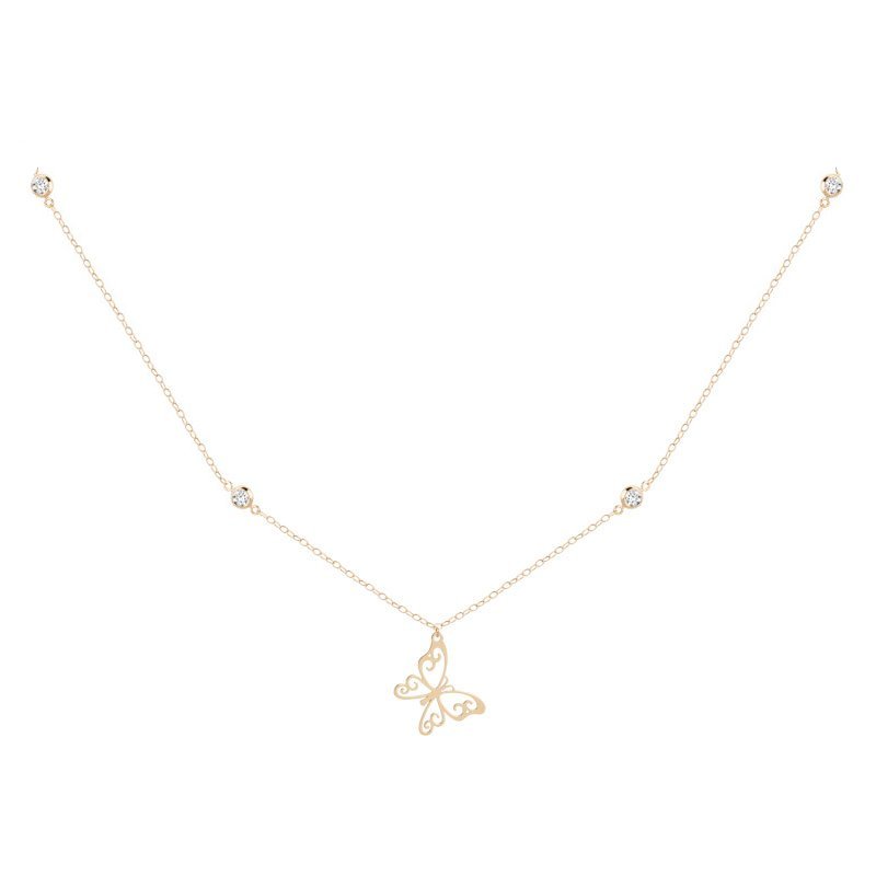 Gargantilha Borboleta com Topázios Brancos